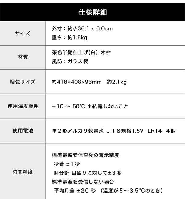 ●茶色半艶仕上げ(白)木枠・風防:ガラス製