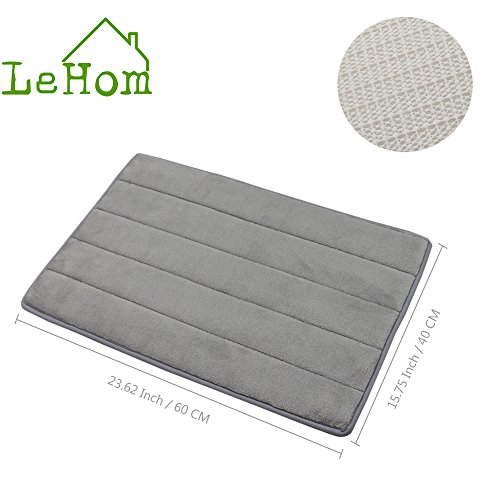 Bath Mat Memory Foam Gray Non Slip, LeHom 16’’ x 24’’ Bathroom Floor Mat Carpet Water Absorbing