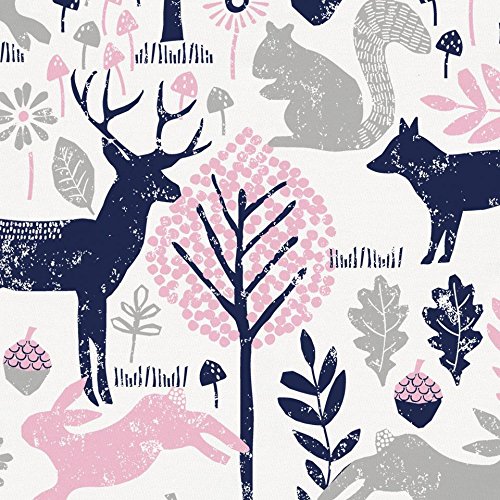 (Carousel Designs)/Nursery/Bedding/DIRECT FROM USA/Carousel Designs Bubblegum Pink and Navy Woodland Animals Crib Skirt Single-Pleat 17-Inch Lengt...