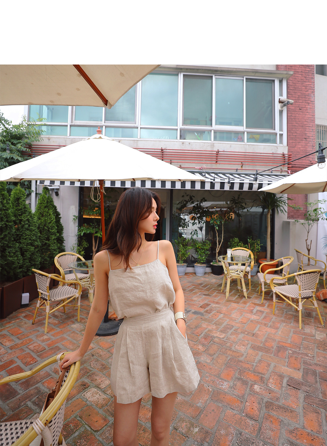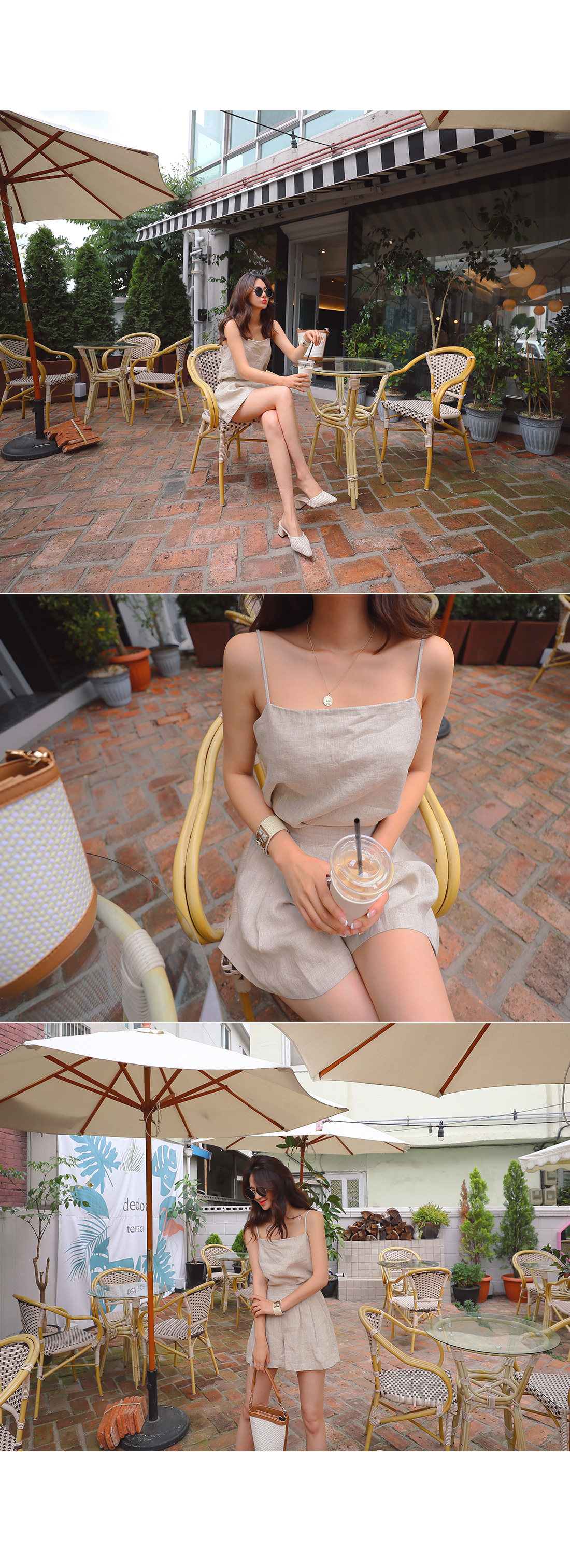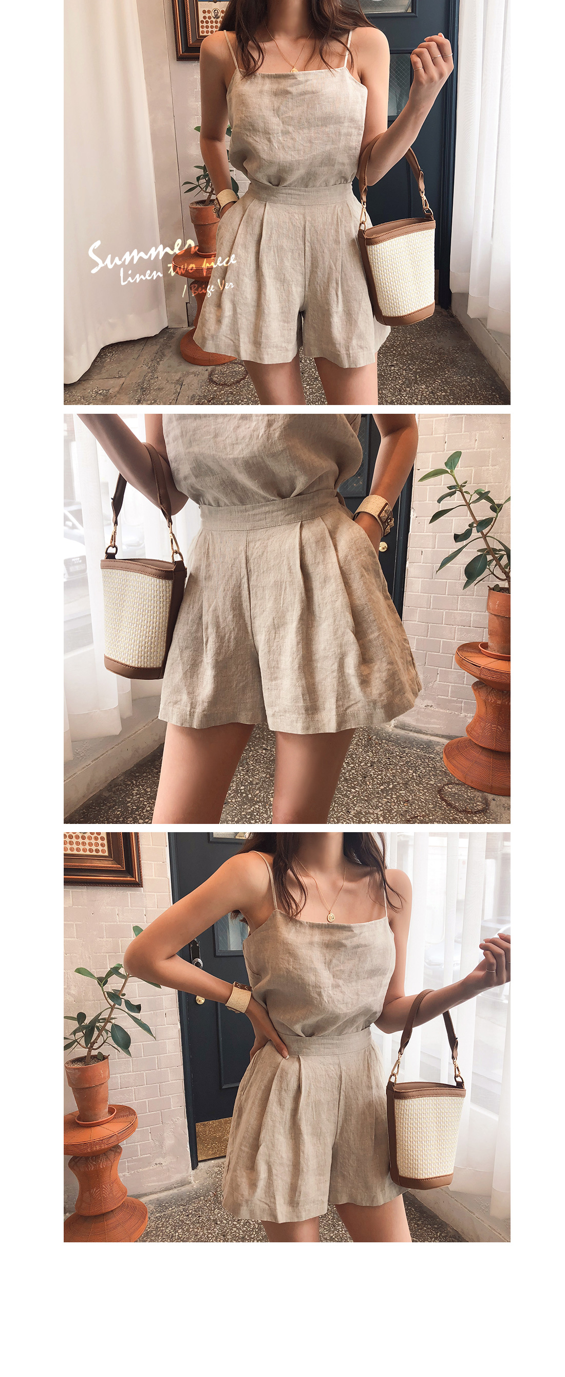 MD COMMENT 데일리하게 즐기기좋은 SET 아이템 소개할게요.슬리브리스와 팬츠가 SET로 구성된 아이템으로데일리하게 즐기기 좋답니다.린넨소재로 시원하게 착용할 수 있어요.슬리브리스는 살짝 깊은 파임으로 제작되었으며목선과 쇄골라인을 예쁘게 연출해줘요.밑단 사이드 트임으로 포인트를 주었어요.팬츠는 양 사이드에 포켓으로 실용성을갖춰주었으며 숏한기장감으로롱한 레그라인을 연출할 수 있어요.허리라인 핀탁으로 밋밋함도 덜어주었답니다.투피스로 착용은 물론 단독으로다른 아이템과 매치하여 스타일링할 수 있어활용도가 높답니다.컬러는 베이지,스카이블루 2컬러로 구성되었어요.COLOR/SIZE 베이지,스카이블루FREEMODEL FITTING 베이지/FREE키(163CM)/상의(S),하의(26)/신발(235)