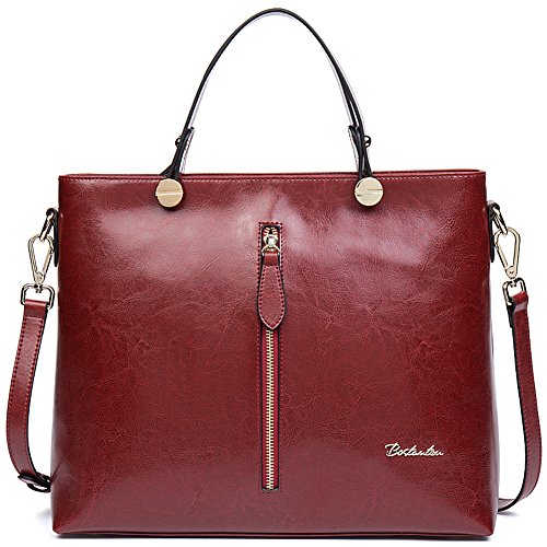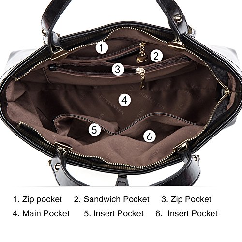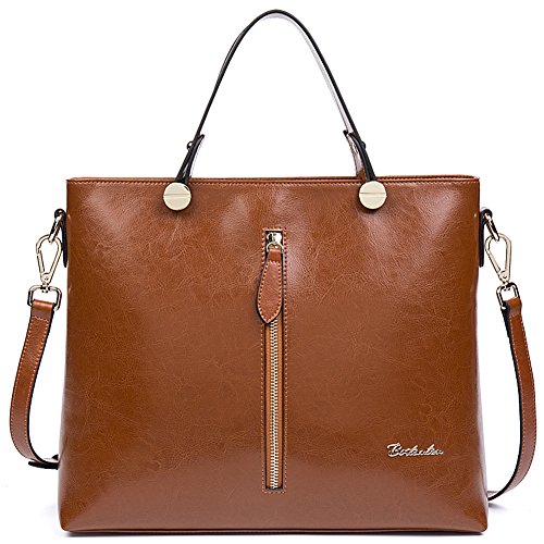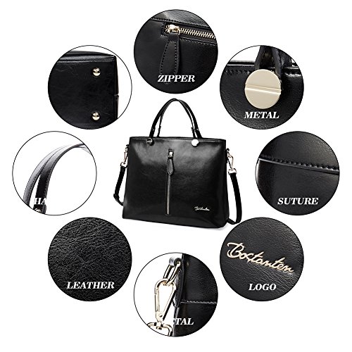 [Material]: Top leather for the handbag, cowhide is made of full grain leather. Come with light gold custom antioxygenic hardware and durable fabric lining. The lining is durable and smooth. These make the leather handbags more luxury and elegant. Zipper closure for your security.