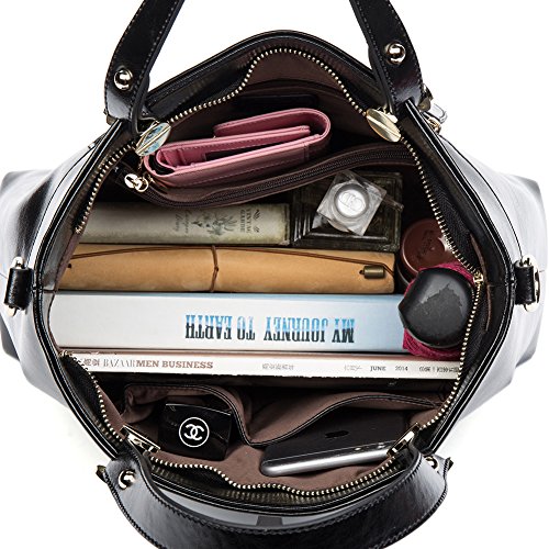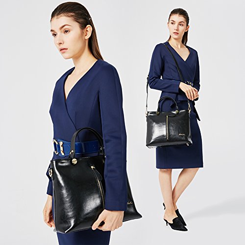 [Design]: The handbag made by professional artisans. The leather purse appearance concise and atmosphere, powerful.Large capacity designed, this women handbags comfortably holds a 10 inch tablet, iPad, iPhone6s Plus, wallet, cosmetic, and other daily things, perfect to use as daily handbags for working, shopping, or dating.