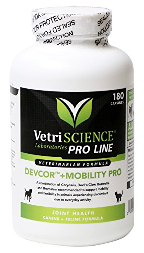 Vetri-Science Decor +Mobility Pro is a dietary supplement that combines Corydalis, Devil’s Claw, Boswellia and Bromelain to support mobility, flexibility and comfort required for everyday activity. Decor +Mobility has been designed to help relieve general aches and pains associated with physical activity and over-exertion making it an exceptional every day support product for energetic dogs and cats. Decor +Mobility Pro is veterinary approved as an herbal, natural alternative to the use of prescription NSAID medications given for pain. Can be given everyday or as needed for pain management. Corydalis yanhusuo is an herb used in Chinese medicine. It has been studied for its swift response in helping the body to deal with both acute and chronic joint discomfort. It has been shown to exhibit a wide number of actions on the central nervous system which support comfort. Devil’s Claw is a plant indigenous to South Africa. The active ingredients in Devil’s Claw are iridous glycosides called harpagosides, which are found in the secondary root. Devil’s Claw has been used for thousands of years in Africa for fever, joint discomfort and skin conditions. It appears to support joint flexibility and comfort by its ability to promote the production of favorable prostaglandins (1 & 3) and leukotrienes. Decor Mobility Pro is an excellent choice for supporting discomfort resulting from everyday activity in energetic pets. Directions For Use: Under 10 lbs. 1/4 capsule twice daily 10-20 lbs. 1/2 capsule twice daily 21 - 50 lbs. 1 capsule twice daily 51- 100 lbs. 2 capsules twice daily Over 100 lbs. 3 capsules twice daily Use as needed for maximum comfort for dogs or cats with limited mobility and flexibility.Feature