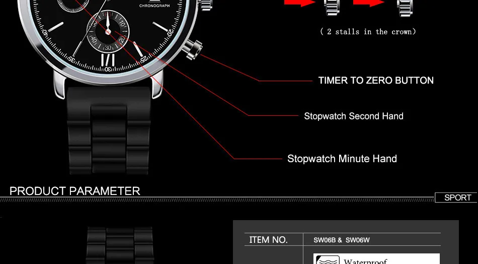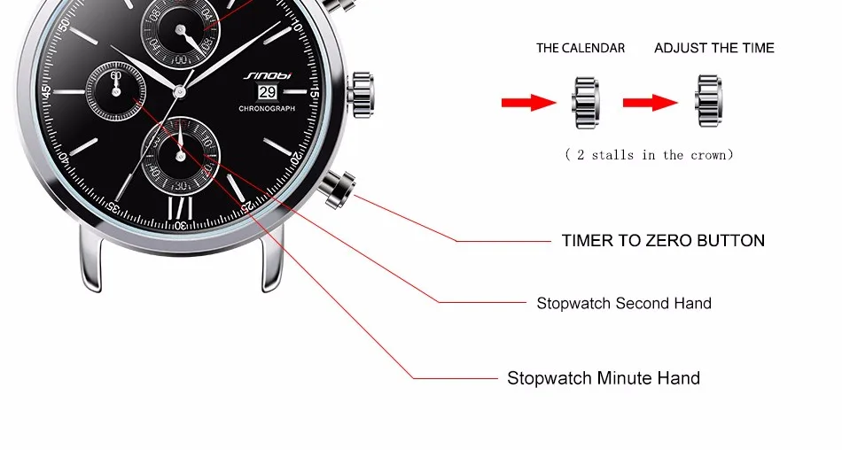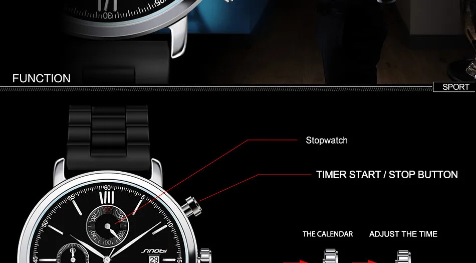Feature:Water Resistant,Shock Resistant,Stop Watch,Complete Calendar,Chronograph,Auto Date