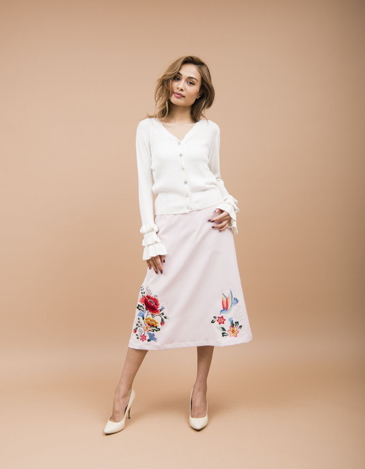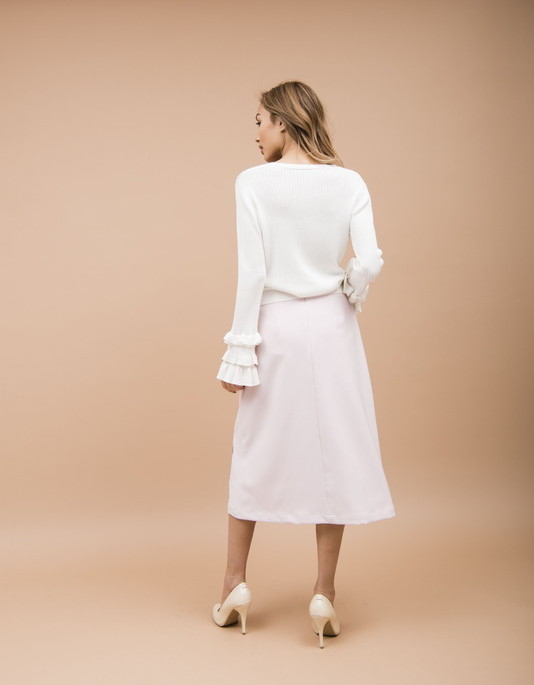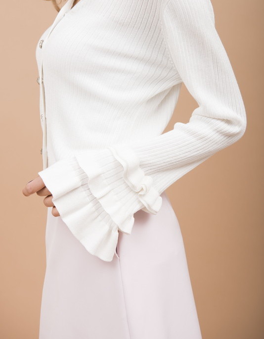 色違いで欲しくなる、着まわし力の高いカーディガン。コンパクトなサイズで、女性らしさが一層際立つ袖口のフリルが魅力的◎フロントのボタンを留めてプルオーバーとして着るのもオススメです。