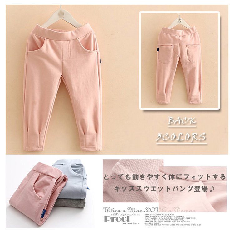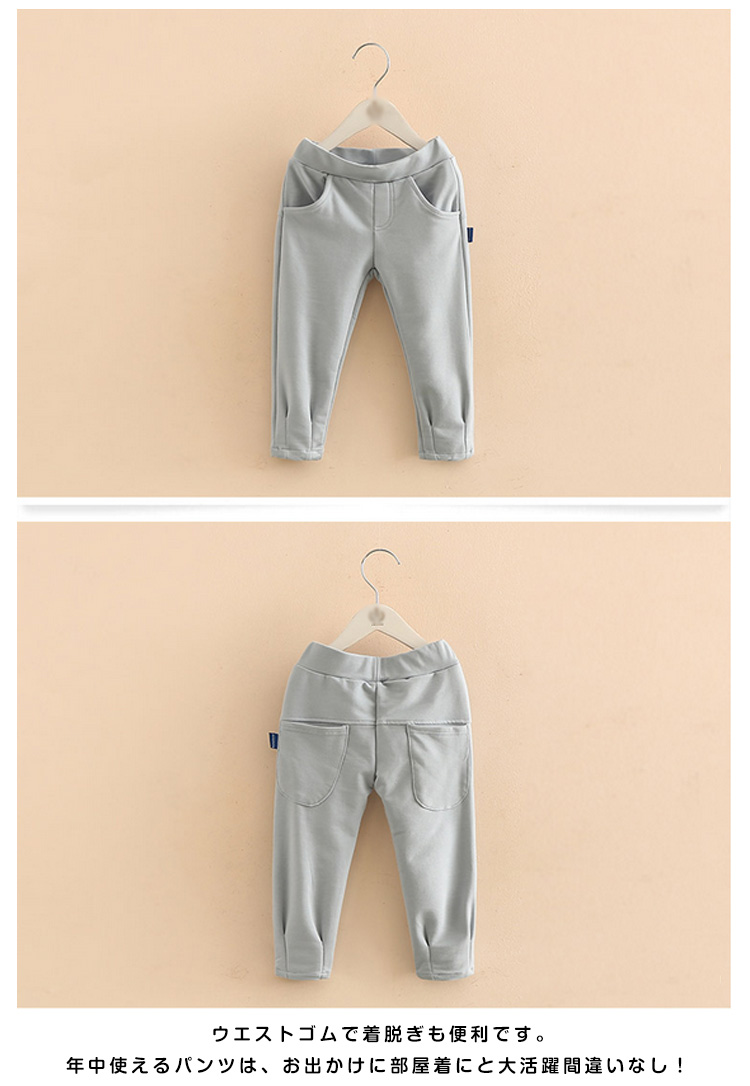 | とっても動きやすく体にフィットするキッズスウエットパンツ登場♪柔らかいやや伸縮性のある素材なので、活発に動いて遊んでも動きやすい。ウエストゴムで着脱ぎも便利です。年中使えるパンツは、お出かけに部屋着にと大活躍間違いなし! 友達や姉妹でお揃いにしたり、コーディネートで数カラーまとめ買い!持っているととっても便利ですよ♪ | |