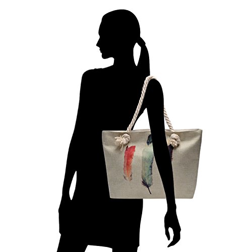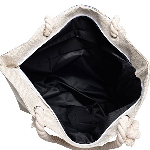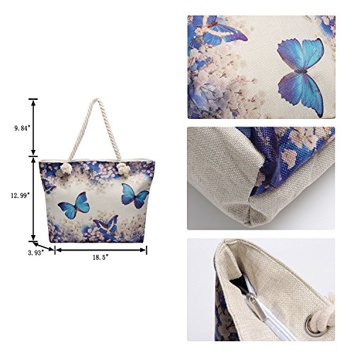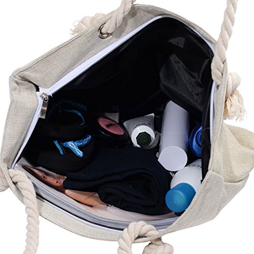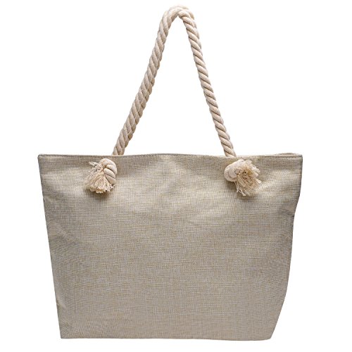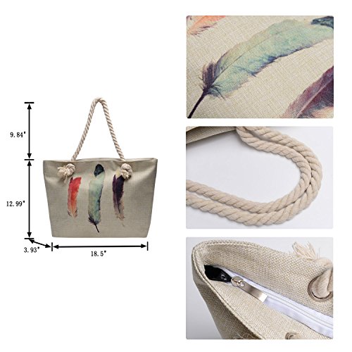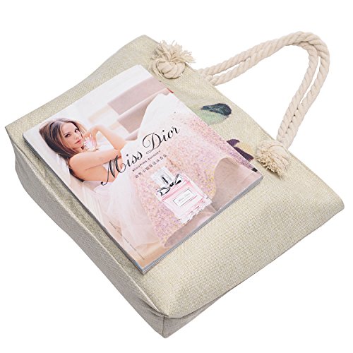 -. Title : Vintga Large Beach Bag Zipper Pocket P.R.Int Canvas Tote with Top Rope Handles Shoulder Bag Travel Tote Bag for Women and Girls