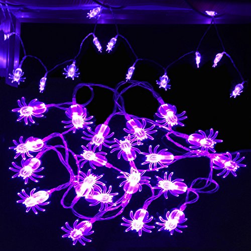 -. Feature : Halloween decoration,LED string lights perfect decoration for Halloween themed parties,thanksgiving day decorations,carnival,festival,celebration,bar decoration,home decorations and outdoor decoration and special occasion / Battery-operated,requires 3 AA batteries(Not Included),the battery box is not waterproof,so protect the battery box when you use it outdoors / 20 LED purple spider lights.Two modes switched to be chosen: steady/ flash / Low power consumption with a long service time,safe and reliable,energy saving and pretty performance easily to build a scary atmosphere / Each light is individually tested,it will arrive in good working condition.If there is any issue,please don't hesitate to contact us for support