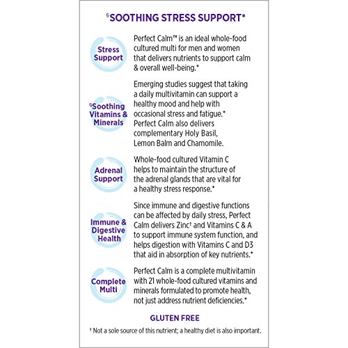 Discover a daily herbal multivitamin to support healthy mood and stress while nourishing the body.* Perfect Calm multivitamin delivers a full panel of nutrients from Vitamin A through Zinc, and is expertly formulated with complementary botanicals including Holy Basil and superfood Turmeric. Helps with occasional stress and fatigue, mood support, adrenal support (key for the body’s healthy stress response), immune support, and digestion support.* New Chapter multivitamins are fermented with probiotics whole foods and easily digestible?even on an empty stomach. *These statements have not been evaluated by the Food and Drug Administration. This product is not intended to diagnose, treat, cure, or prevent any disease. 0 |