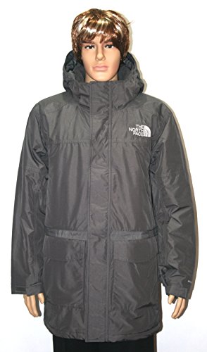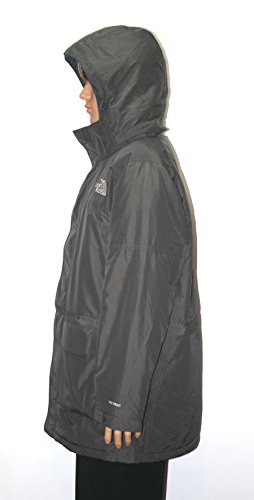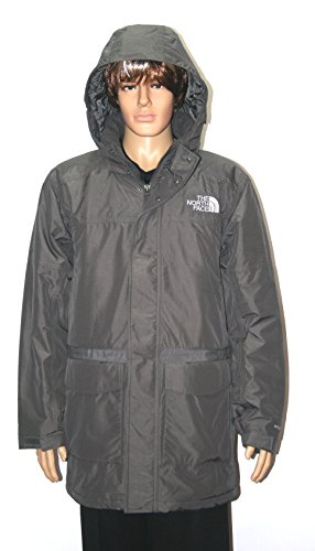 -. Binding : Apparel -. Brand : The North Face -. Color : Graphite Grey -. Department : mens -. Feature : 100% AUTHENTIC NYLON/POLYESTER .Detachable zip-off hood with snaps Full front zip with snap storm flap 2 side zippered pockets behind 2 front flap pockets! Adjustable cuff Toggles at hood Quilted interior LENGTH 34"-38" -. ProductGroup : Apparel -. ProductTypeName : OUTERWEAR -. Title : The North Face Carnic Jacket men's long parka AUTHENTIC graphite grey HYVENT