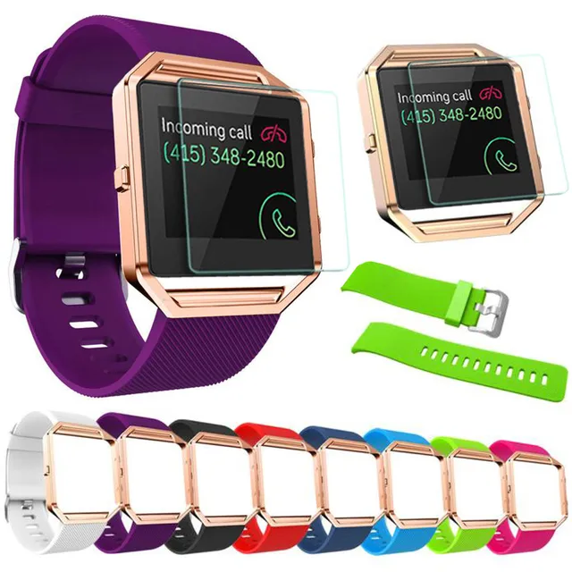 상품 내용 시계 스트랩 부드러운 실리콘 시계 밴드 손목 스트랩 + 금속 프레임 + HD 필름 핏 비트 블레이즈 시계 Correas 드 reloj 8 색 시계 특징:
