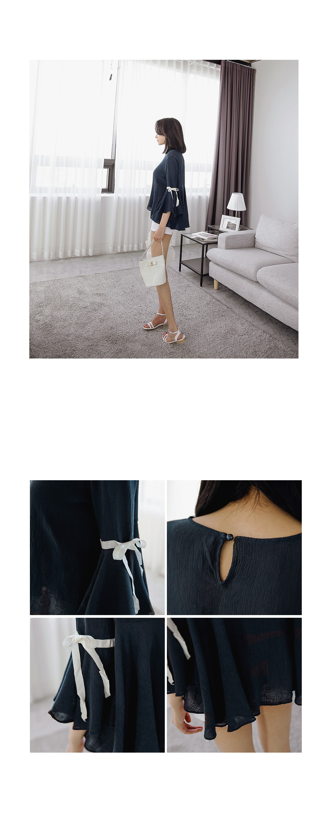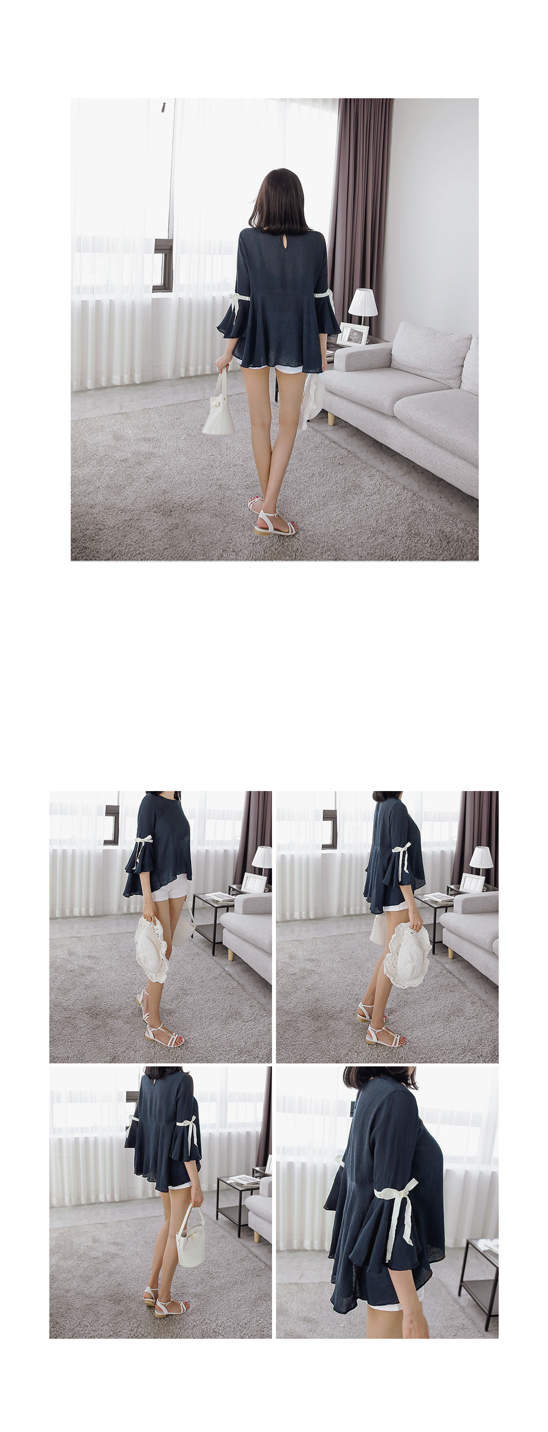 여유있는 핏감과 소매 리본 디테일이 가미된 러블리한 느낌을 연출해드리는 블라우스아이템을 소개해드릴께요~^^여유있는 핏감으로 누구든지 편안한 착용감을 선사해드리는 블라우스아이템이랍니다~자칫 밋밋할 수 있는 베이직한 블라우스에소매 라인에 리본 디테일을 더해주어 한층 더 러블리하고 여성스러운 분위기를 느낄 수 있는 아이템이예요~적당한 두께감의 아이템으로 계절에 구애없이 다양한 코디매치를 할 수 있답니다~
