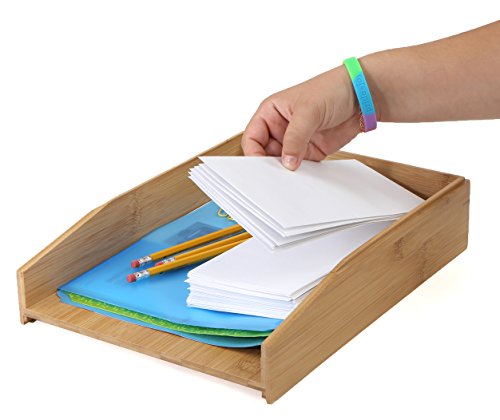 Mind Reader File Organizer Desktop Document Letter Tray, Eco-Friendly, Bamboo, Brown