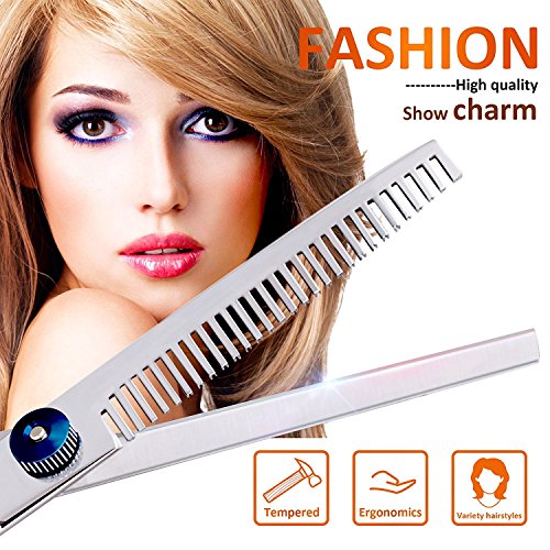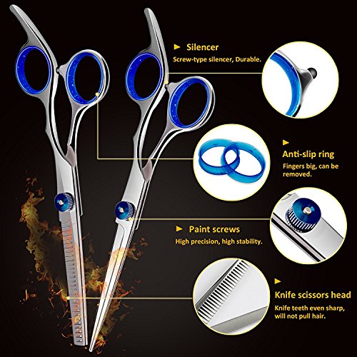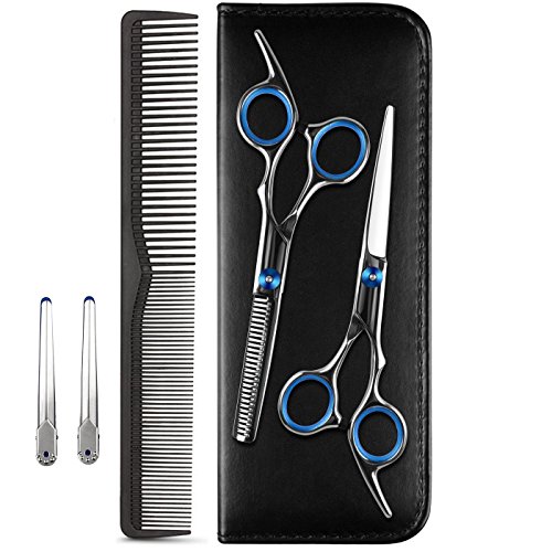 - Set of Hair Cutting Scissors and Thinning: Pay for just 1 price and get two hair cutting tools, including 1×regular hair scissors, 1×texturing thinning scissors, 1×grooming comb, 2×stainless hairpins, 1×Protective Leather Zipper Case as a protector for the set