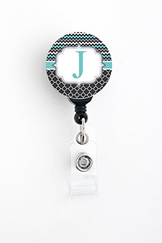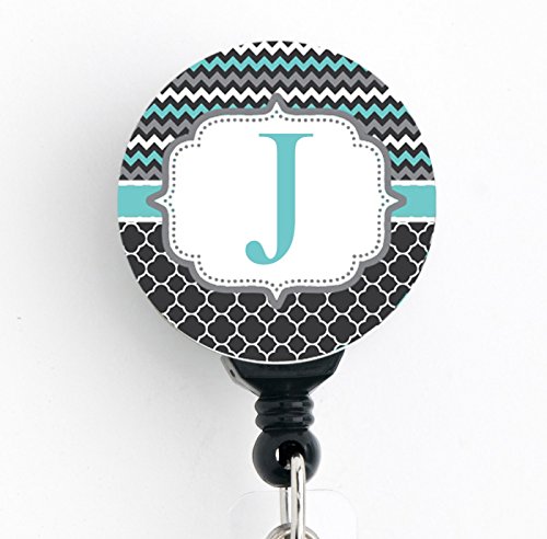 J Initial Chevron Trellis - Retractable Badge Reel With Swivel Clip and Extra-Long 34 inch cord - Badge Holder