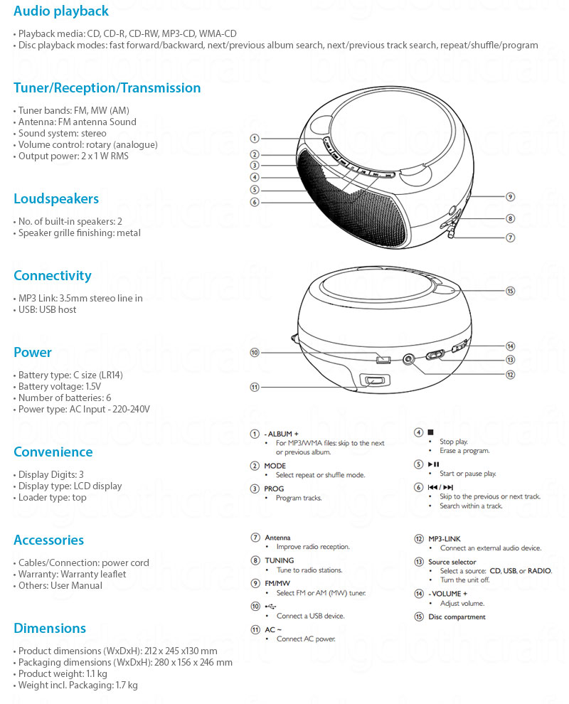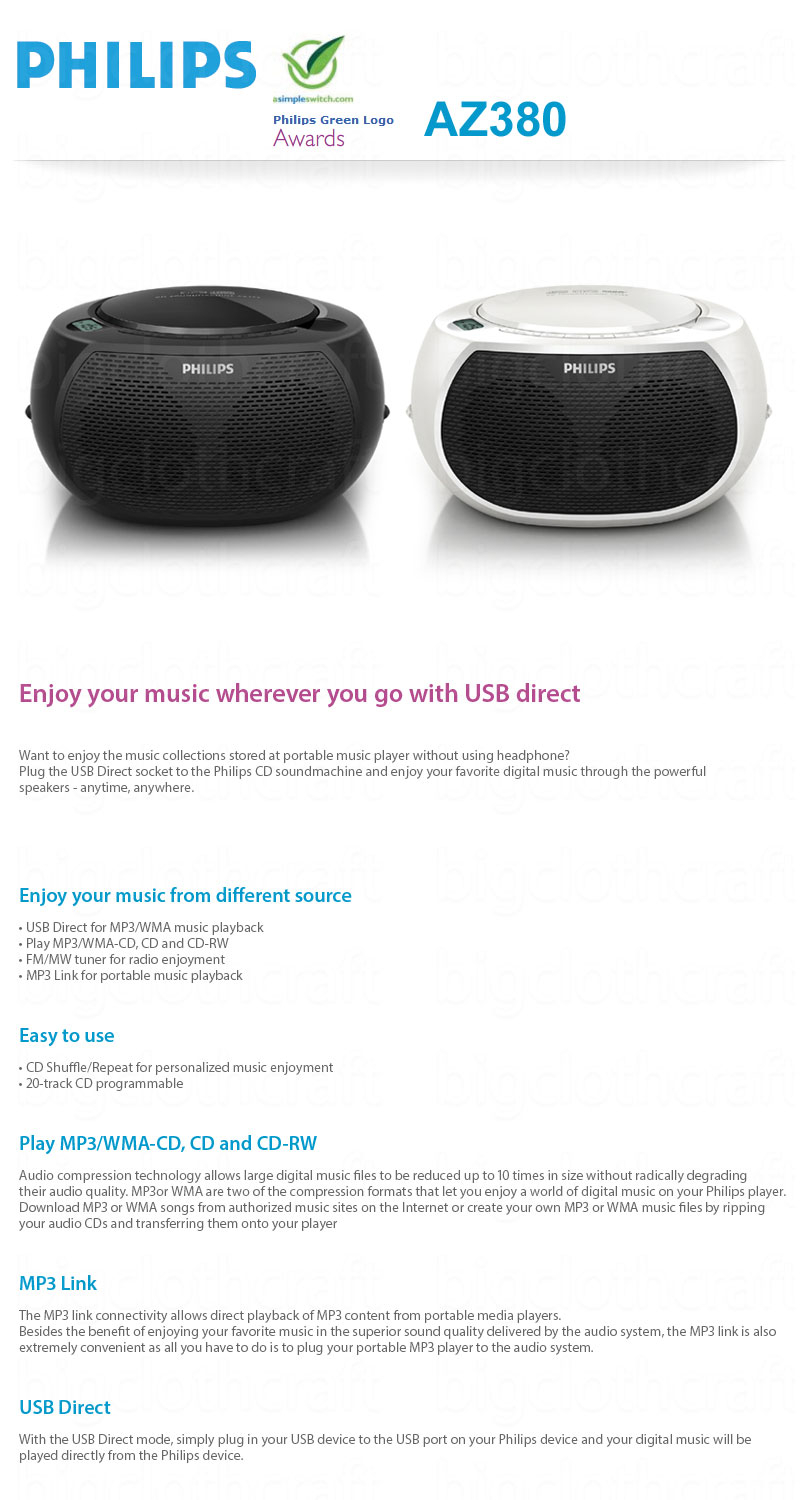 Philips AZ380 Portable Audio CD/USB Player, Radio FM, LCD Display, Black 220V