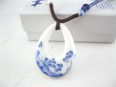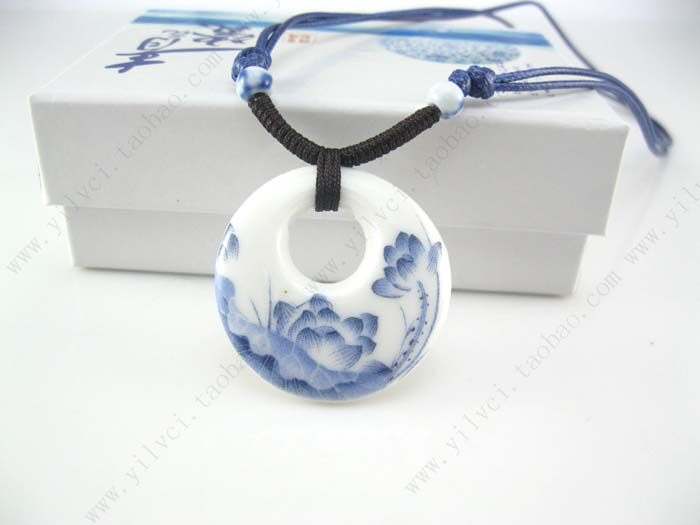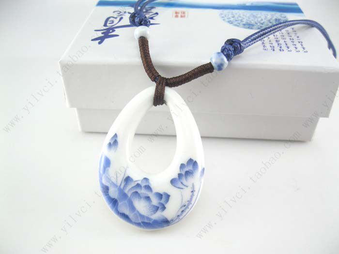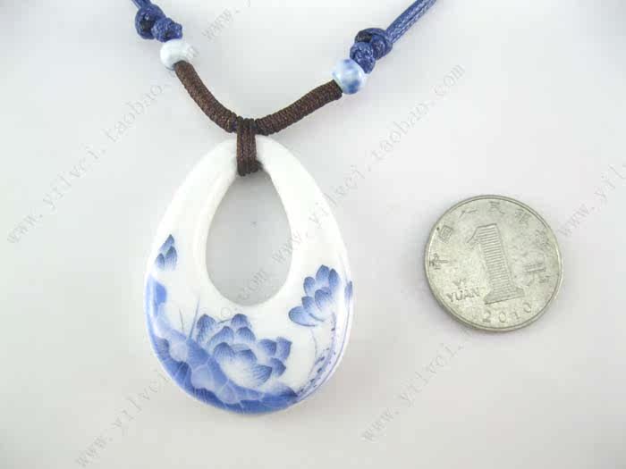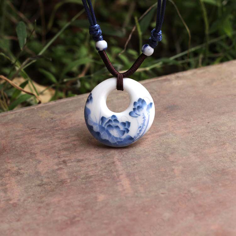 Lotus hazy national wind ceramic pendant necklace jewelry