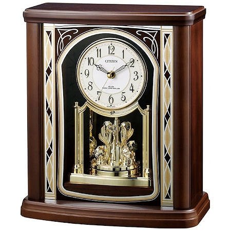 -. Title : リズム時計 置き時計 電波 アナログ パルロワイエR698SR クリスタル 回転飾り付き 木 茶 RHYTHM 4RY698SR06