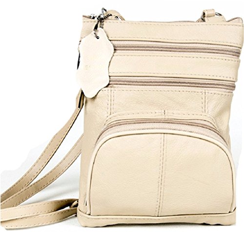 Meticulously crafted genuine lambskin leather crossbody bag has an abundance of organizational pockets, This stylish cross body bags is the perfect everyday travel purse. At a small size it is easy to carry around. Yet with five assorted sized zippered pockets to hold all of your things. Both front and back pockets are handy for quick access to your cash, phone, lip gloss and keys while an adjustable strap allows easy transitions from shoulder to crossbody styles.?Feature