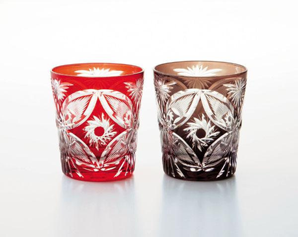 ギフトに最適な化粧箱に入った「色被切子」のペアセット。