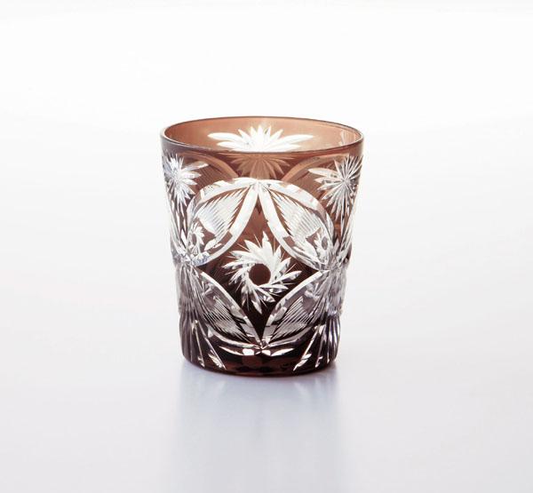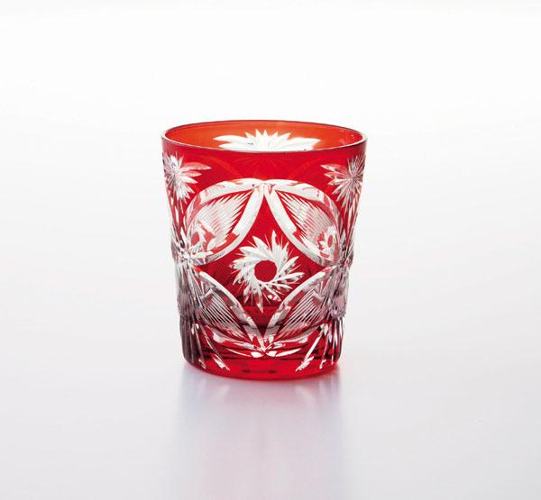 クリアなグラスに色硝子を被せハンドカットを施した色被切子のフリーカップです。蝶を思わせる繊細な切子が特徴、化粧箱入りですのでプレゼントにピッタリです。