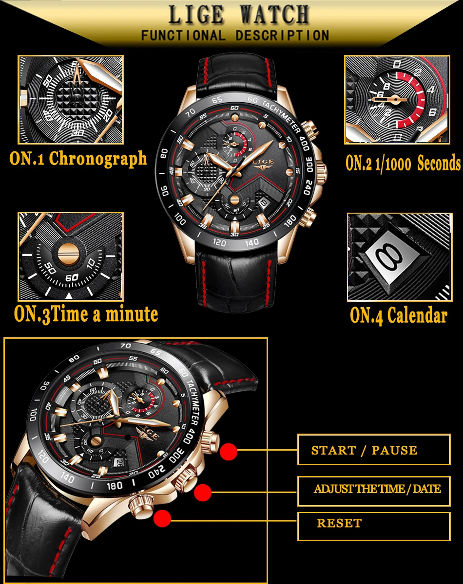 Feature:Luminous Hands,Water Resistant,Stop Watch,Swim,Perpetual Calendar