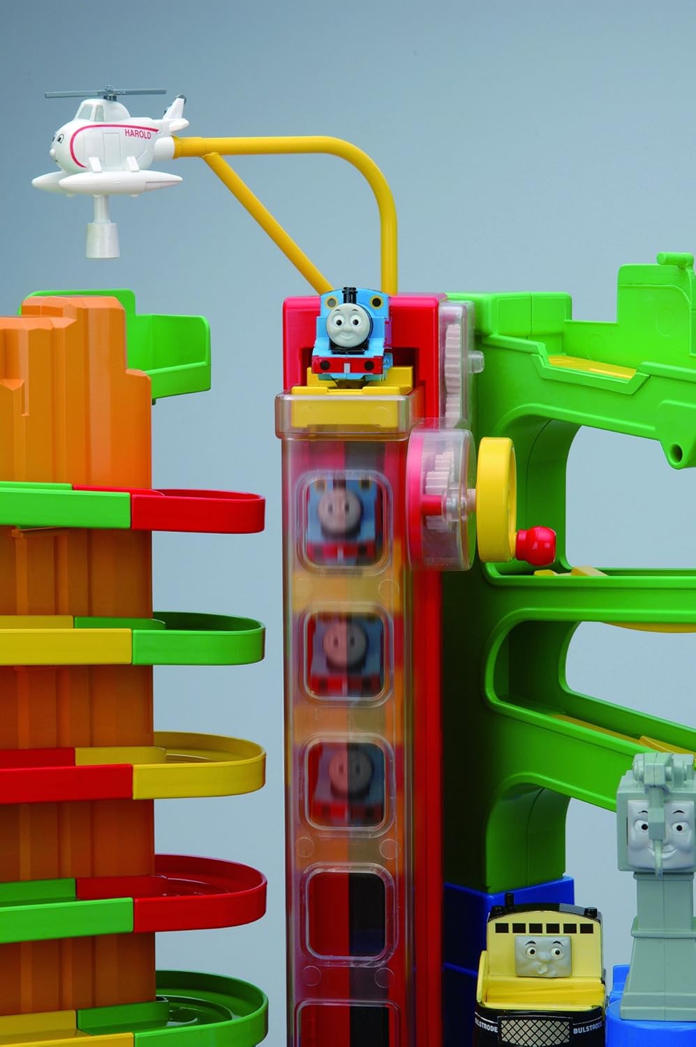 大人気の「トーマス レッツゴー大冒険」にデラックス版である、「トーマス レッツゴー大冒険! DX」が登場!!電池を使わずにレバーやボタンを、回す、押す、引くの動きだけでトーマス達と一緒に遊ぶことで、楽しみながらお子様の知覚力や認識力・集中力を伸ばす知育玩具。【セット内容】本体・トーマス・パーシー・風車・クランキー・ハロルド・ポール・エレベーター・スロープ・コースタースロープレールx3・コースターレール 赤x3 黄x3 緑x3・コースターレール(最下部)x1 コースターレール(最上部)x1