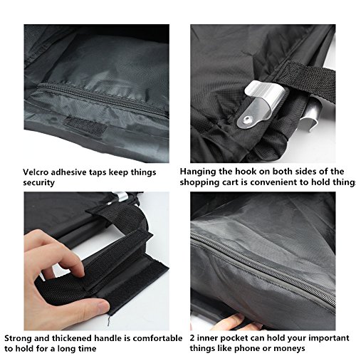 - 2 inner pockets to hold you phone, wallet, list or small things; 4 hooks to hang bag on both sides of the shopping cart, is more convenient to hold things