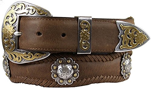 (Hagora)/Accessories/Belts Buckles/DIRECT FROM USA/Hagora Men Oil-Tanned Leather Silver Gold Berry Conchos Floral Buckle Belt