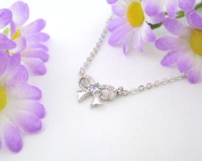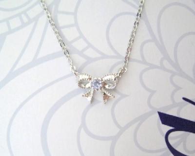 かわいらしいリボンにミルを打ち、アンティーク感漂う女性らしい仕上がりにしたペンダントです。