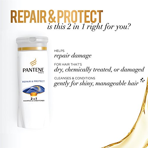 Help stop damage starting now with Pantene Pro-V Repair and Protect 2in1 Shampoo and Conditioner. This repair 2 in 1 shampoo and conditioner uses a protective formula that cleanses and conditions in 1 easy step, helping repair 6 months of damage in 1 use by restoring smoothness, shine, and manageability to hair. Its strand-protecting dual-polymer formula contains damage-defying antioxidants that help prevent protein loss to help protect hair from the inside out. For a total hair repair system, use with Repair and Protect Collection stylers.Feature