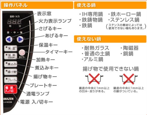 원본상품명: 山善(YAMAZEN) IHホットプレ?ト 高火力1400W ブラック IH-H1400(B)
