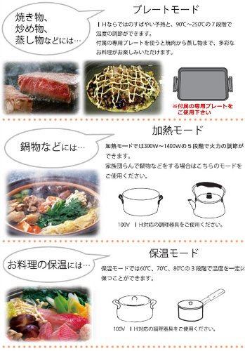 IH만이 가능한 민첩한 예열과,90-250도의 7단계에서 온도의 조절 이 생기는 부속 전용 플레이트를 사용하면 불고기부터 쪄 물건까지,다채로운 요리가 즐길 수 있는 가열 모드