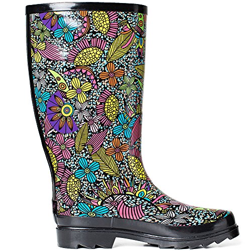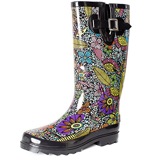 Binding : Apparel Product Description Description : I think you and I can both agree that when it comes to footwear for the cold and wet seasons like fall and winter, rain boots are the least, well, chic . Gone are the days when rain boots are just plain black and boring, the fun prints also have style enough to your outfit and making it look more cheery and lively . Of course, comfortable and practical is important,Made from nature rubber, the design is strong and flexible featuring a waterproof buckle, durable sole with a wide calf for easy wear and take off. You'll find yourself looking forward to stormy, rainy days just so you get to wear your cute wellies .