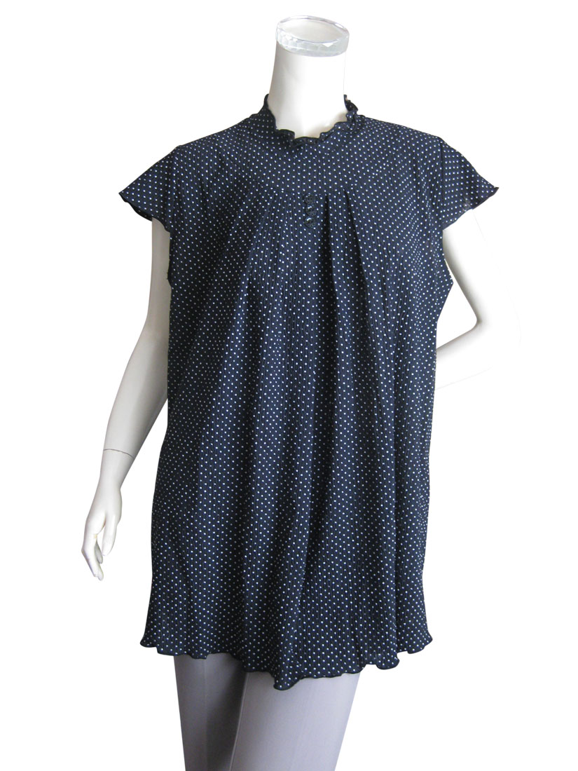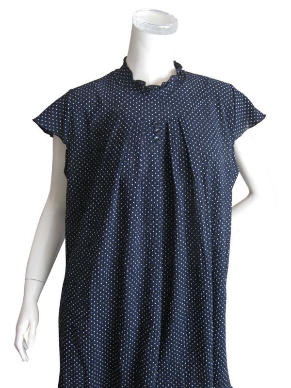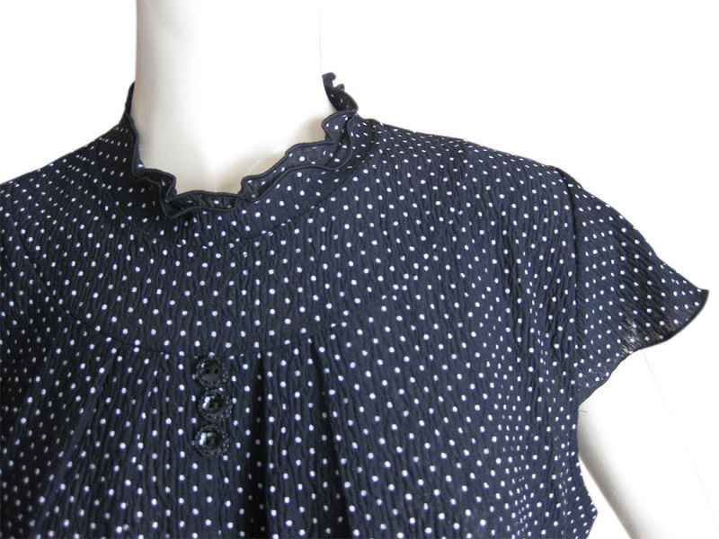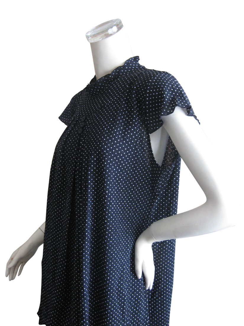 黒地に小さなドット柄とキャップスリーブ、首周りのフリル、