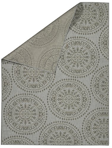 Studio : Ottomanson Publisher : Ottomanson Binding : Kitchen Product Description Ottomanson Jardin collection is inspired by the charm of natural sisal rugs and designed with a rich texture to enhance any space effortlessly. This elegant 5'3" x 7'3" rug is crafted using a power-loomed construction and features a medallions design with neutral hues with a dominant light Grey color in the background accompanied with tastefully-designed circular medallion-design circles in dark Grey lines, which create an exquisitely smooth and natural integration with any home decor, furniture and floor type. The flat weave pile allows for seamless placement underneath furniture and in entryways while its fringeless border offers a clean look and feel. This rug is also ideal for families with pets and kids. Perfect for interior or exterior usage in any deck, backyard, porch, patio, terrace, kitchen, living room, kids room, summer house, poolside, picnic or camping areas, this rug will instantly turn your outdoor and indoor area into a resort-style entertaining space. More than a decorative enhancement, this rug is both mildew and mold-resistant to ensure carefree maintenance for a long time. Treat yourself to this versatile rug from our Ottomanson Jardin collection available in a rich variety of colors, designs and sizes to fit your personal style and add a fantastic casual sophistication and visual inspiration to your space. 0
