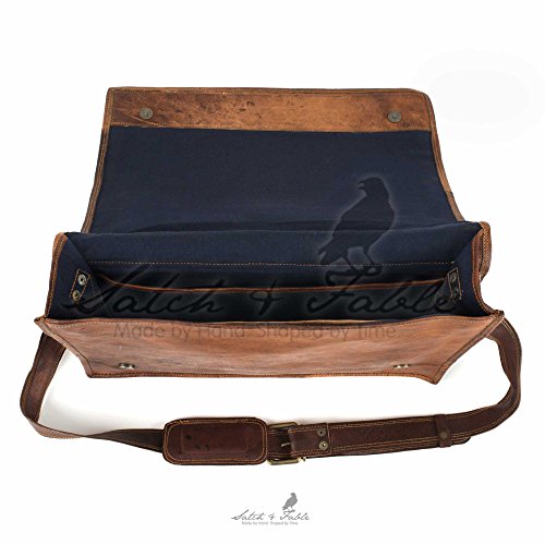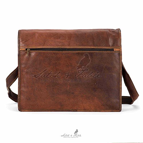 -. Binding : Electronics -. Brand : Satch&Fable -. EAN : 0705332894906 -. Feature : 15"(w)x11"(h)x4"(d) Shoulder strap, Solid brass fittings that will not rust tarnish or leave black marks / Three internal compartments one padded, Two zippered pockets, / Strong lightweight Morocco leather (naturally waterproof goatskin) / Natural tanning process without the use of chemicals or dyes, / Tawny color that grows richer and darker with use, Lining: durable blue canvas -. Label : Satch&Fable -. Manufacturer : Satch&Fable -. ProductGroup : PC Accessory -. ProductTypeName : CARRYING_CASE_OR_BAG -. Publisher : Satch&Fable -. Studio : Satch&Fable -. Title : Handmade Leather Laptop Flap Bag 15" -. UPC : 705332894906