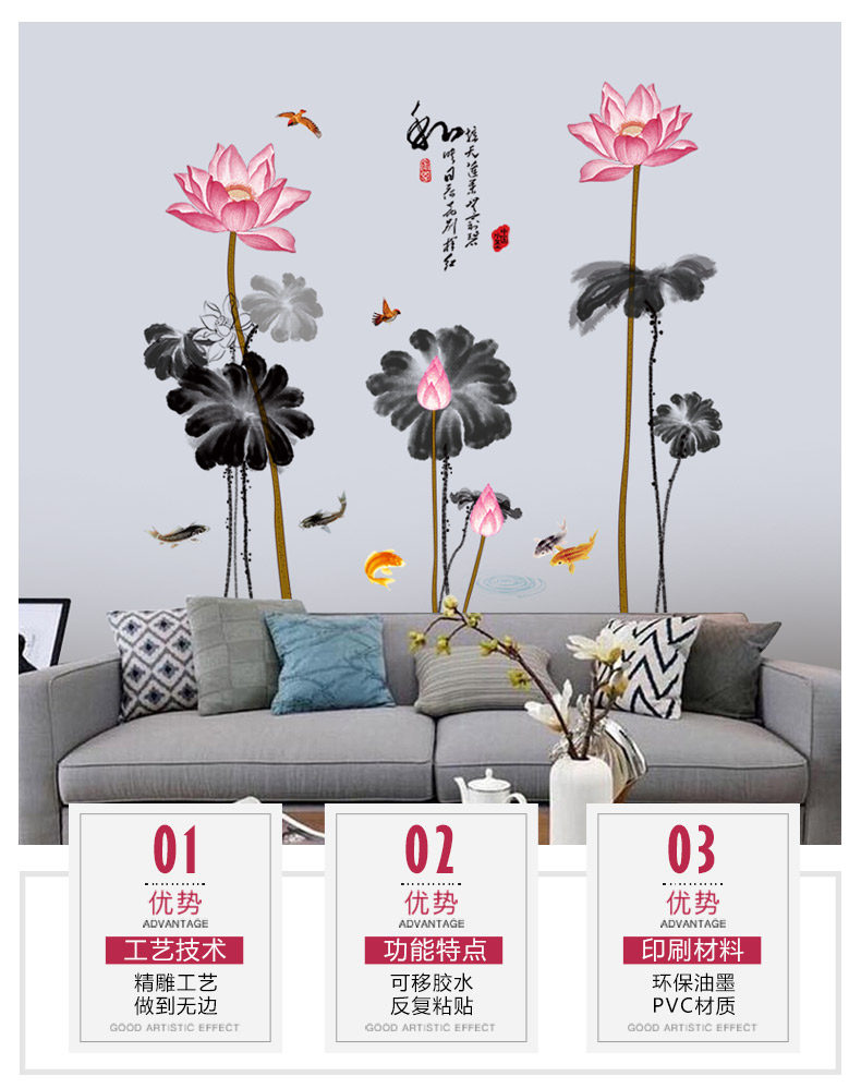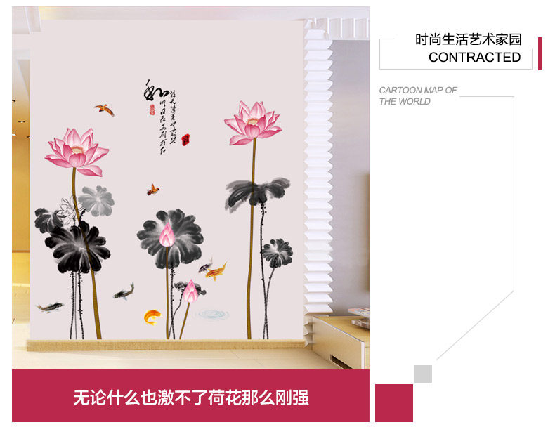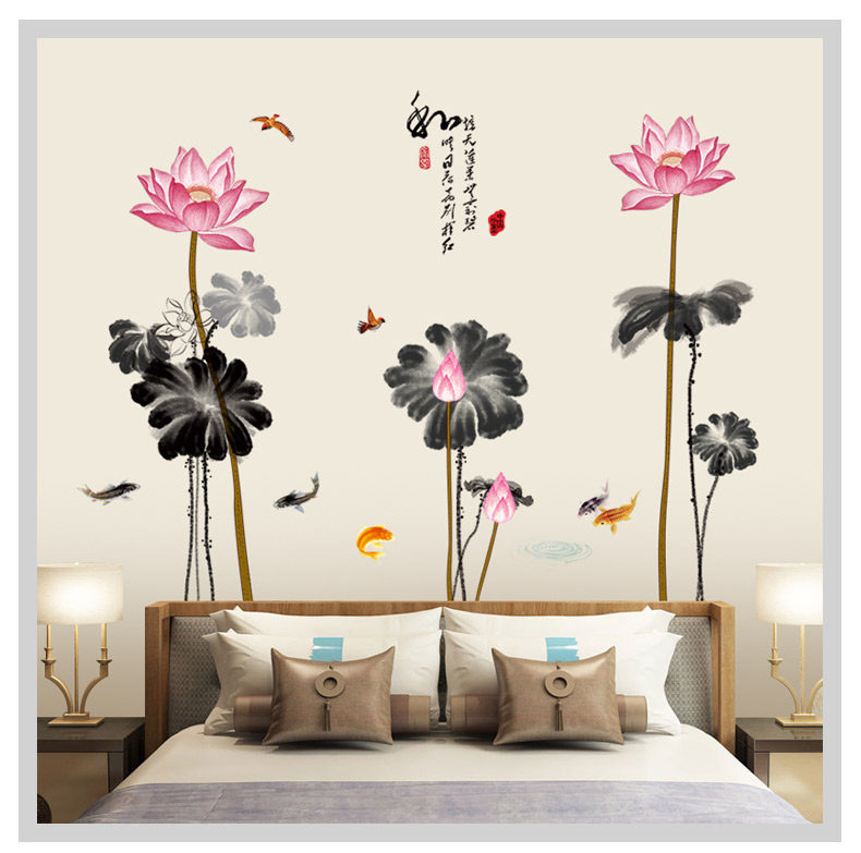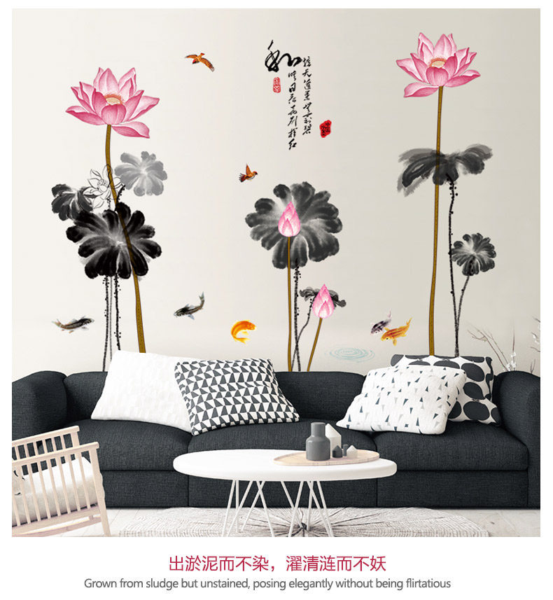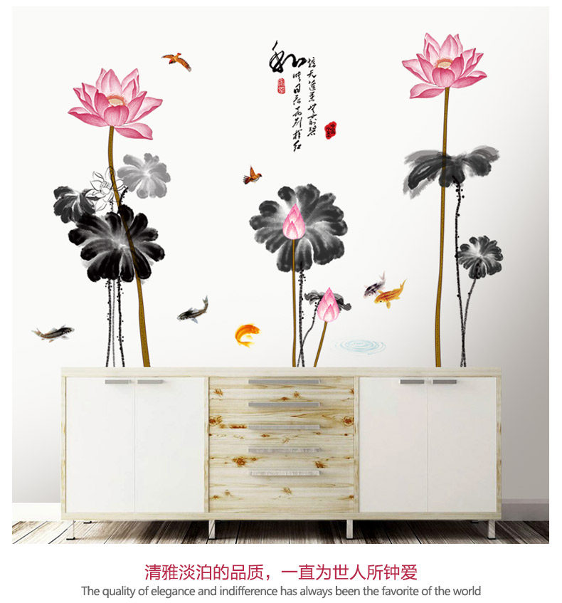 中国风荷花墙纸贴画沙发背景墙装饰房间墙上贴纸客厅墙面墙贴自粘