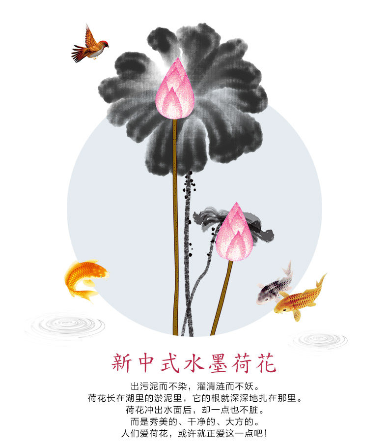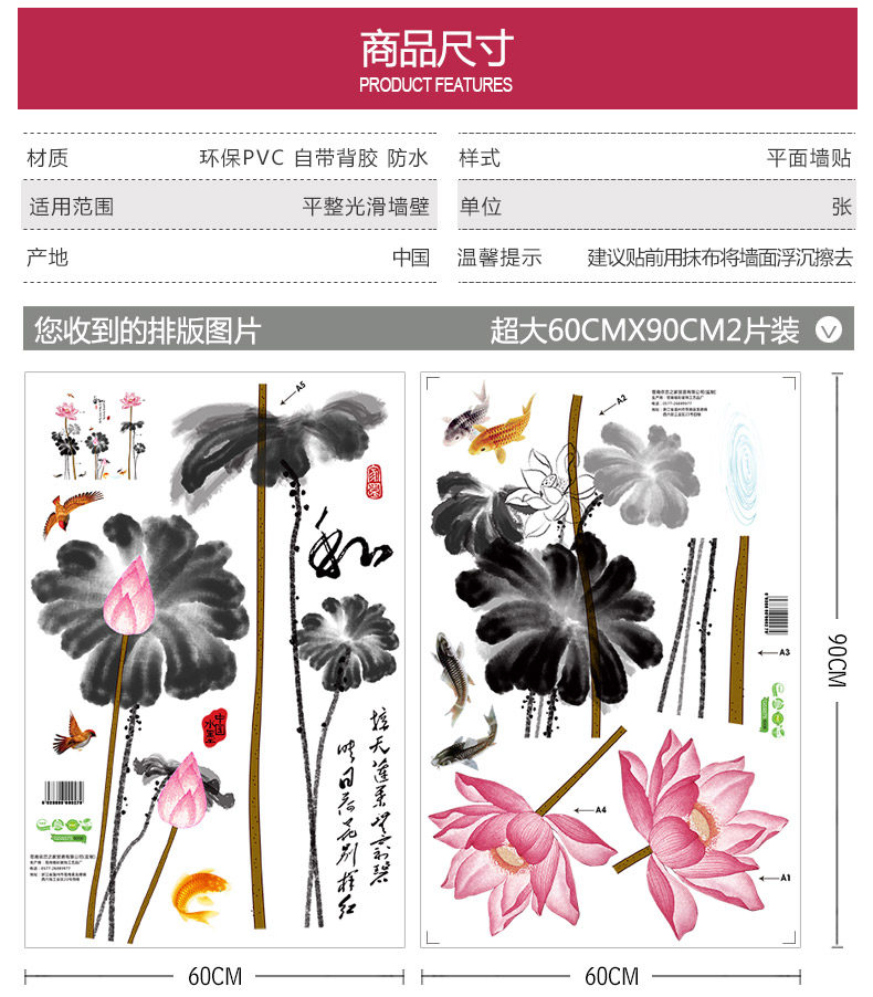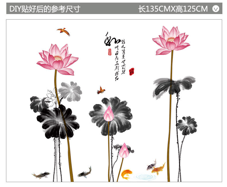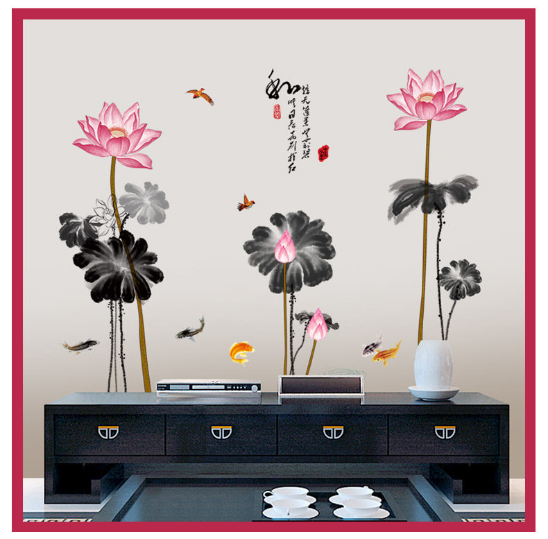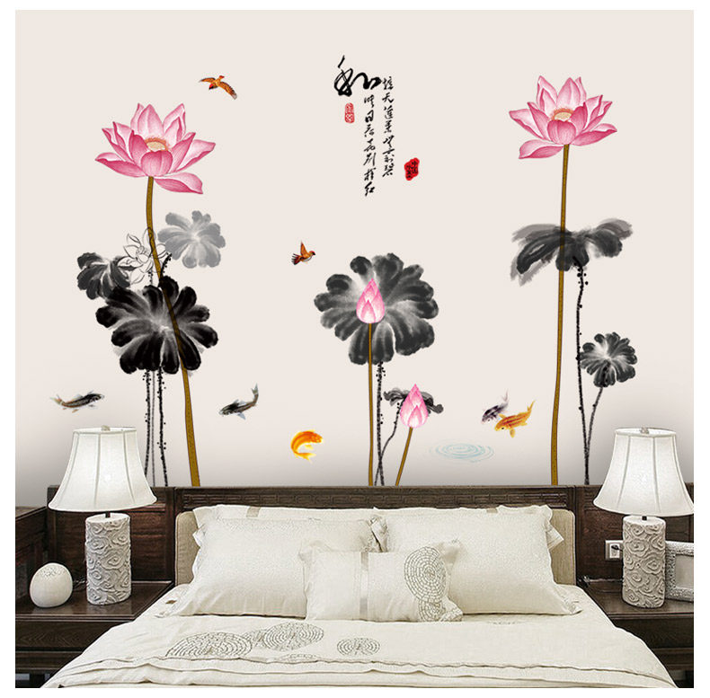 中国风荷花墙纸贴画沙发背景墙装饰房间墙上贴纸客厅墙面墙贴自粘