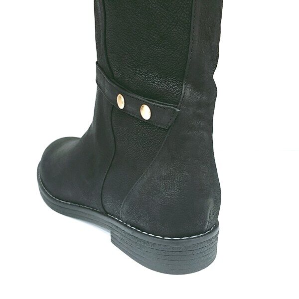 *깔끔한 패턴라인이 돋보이는 똑딱이장식 포인트로 기본에 충실한 하프부츠