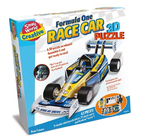 -. Binding : Toy -. Brand : Small World Toys -. EAN : 0090543257337 -. Feature : Here's a puzzle that doesn't just sit around: the Formula One Race Car 3D Puzzle from Small World Creative / Assemble the puzzle and play with the resulting 3D race car / 43-piece vehicle puzzle includes all puzzle pieces, flywheel mechanism, wheels and rims / Assembled car: 11.25''W x 4''D x 3.5''H; for age 5 and up / For 50 years, Small World Toys has delivered fun, safe, innovative and endearing products for children of all ages -. IsAdultProduct : 0 -. Label : Orda USA -. Manufacturer : Orda USA -. Model : 9725733 -. MPN : 9725733 -. PackageQuantity : 1 -. PartNumber : 9725733 -. ProductGroup : Toy -. ProductTypeName : TOYS_AND_GAMES -. Publisher : Orda USA -. Studio : Orda USA -. Title : Small World Toys Creative -Formula One Race Car 3D Puzzle -. UPC : 696747798234 -. Warranty : 30 day warranty against manufacturer defects