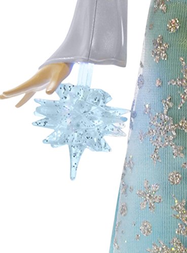 Fans of Disney's Frozen can channel Elsa's magical powers over ice and snow! Featuring lights and action motion, Elsa has never looked so adventurous! When you start to lift Elsa's arm, her other hand will lift and light up. Let her powers really shine by loading a snowflake into her hand, which then flies out of her arm - just like in the movie! This action will remind girls of the special moment when Elsa unleashes her powers, creating her very own ice castle out of snow and ice. She looks radiant and wintry pretty dressed in her iconic snowflake gown and crown. Includes 1 Elsa doll, 3 snowflake pieces and 1 Olaf figure. Doll cannot stand alone.