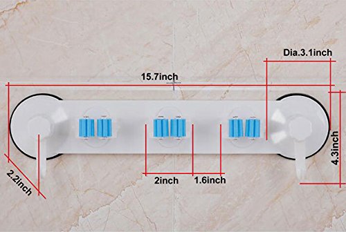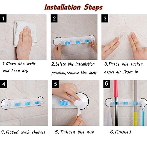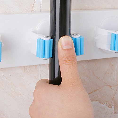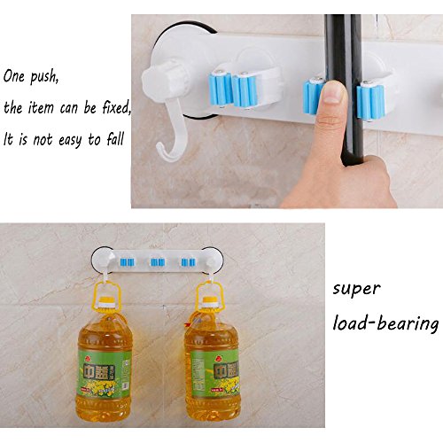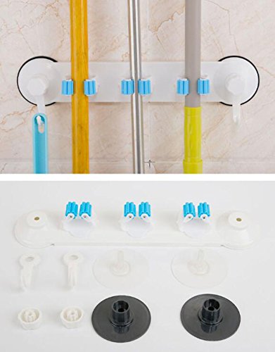 Crystallove Plastic Suction Cup Mop Broom Holder Wall Mounted Garden Tool Hanging Rack with 3 Position and 2 Hooks