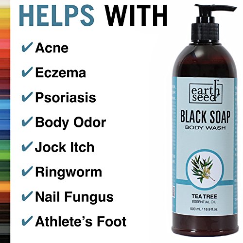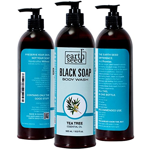 Earth Seed Black Soap-body Wash, Sea Blue, Tea Tree, 16 Fluid Ounce