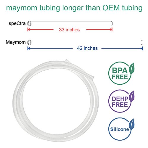 -. Feature : After market parts made by Maymom for Spectra S1 and S2 pumps. 100% compatibility guaranteed, or your money back. / Made of NON-sticky, safe material that does not contain BPA or DEHP. Different material, so it WILL NOT pick up lint, pets' hair etc as easy as the original tube. / 42 inches (longer than original Spectra tubing) in length. Two tubes per pack. / Replacement tubing for spectra pumps that uses a backflow protector.