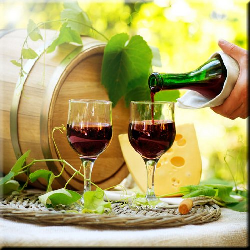 Rikki Knight RK-12intilec-1957 12" X 12" Red Wine & Cheese Design Ceramic Art Tile