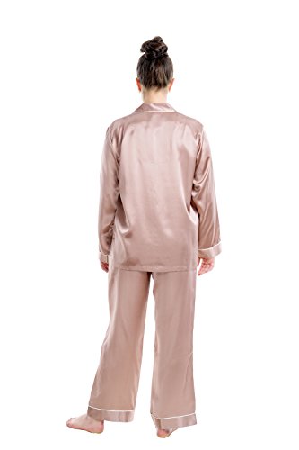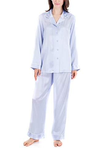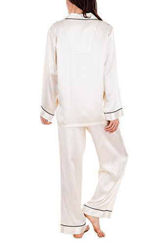 -. Binding : Apparel -. Brand : OSCAR ROSSA -. Department : womens -. Feature : Luxury highest quality 19 momme 100% Pure Mulberry Silk / Top: Long sleeve with elegant contrast piping, fabric covered buttons, attractive notch collar for added appeal . / Pants feature an elastic waist with drawstring for easy relaxing, perfect for sleeping or lounging / Hand wash with like colors in cool water. Gentle detergent. Hang Dry. Do not bleach. Cool iron as necessary. Or dry clean. / Imported / Standard American Size. The model wears S size. -. Model : P490 -. ProductGroup : Apparel -. ProductTypeName : SLEEPWEAR -. Title : OSCAR ROSSA Women's Luxury Silk Sleepwear 100% Silk Pajamas Set