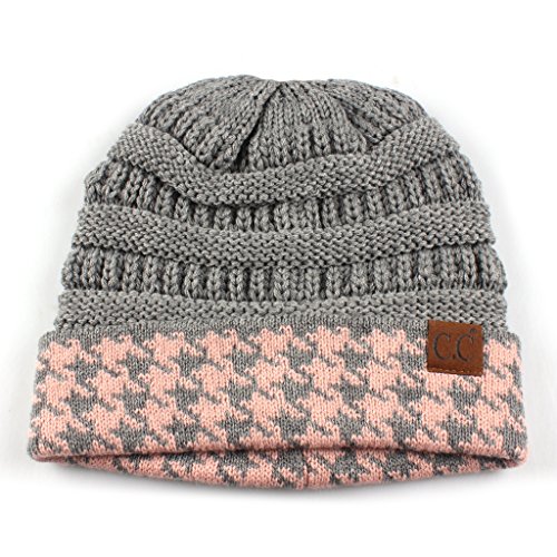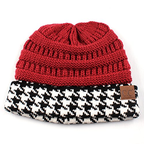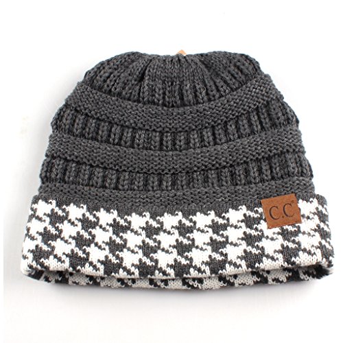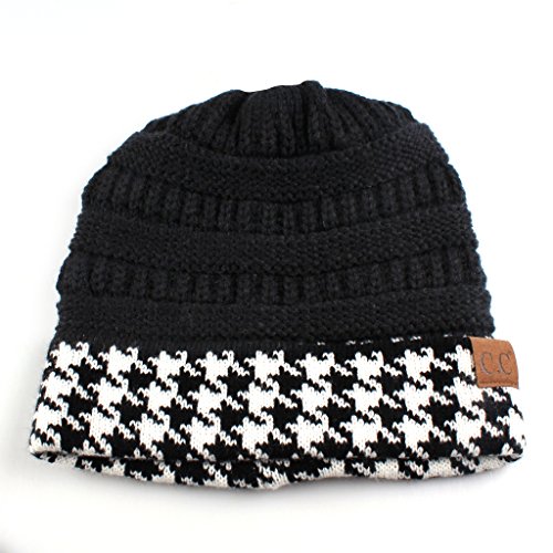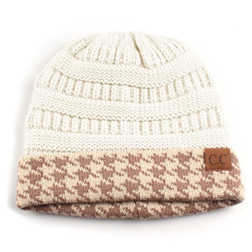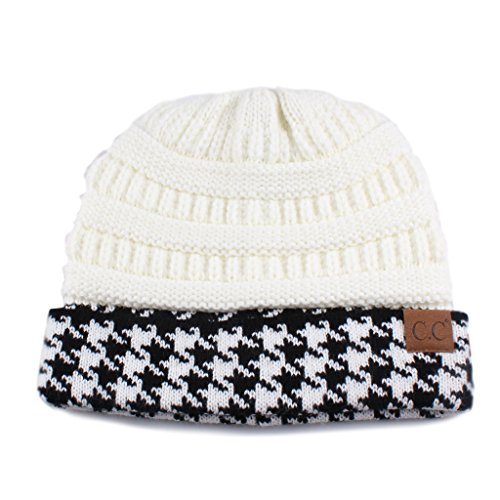 (Hatsandscarf)/Accessories/Hats/DIRECT FROM USA/Hatsandscarf CC Cable Knit Soft Stretch Houndstooth Ribbed Beanie Hat (HAT-12)