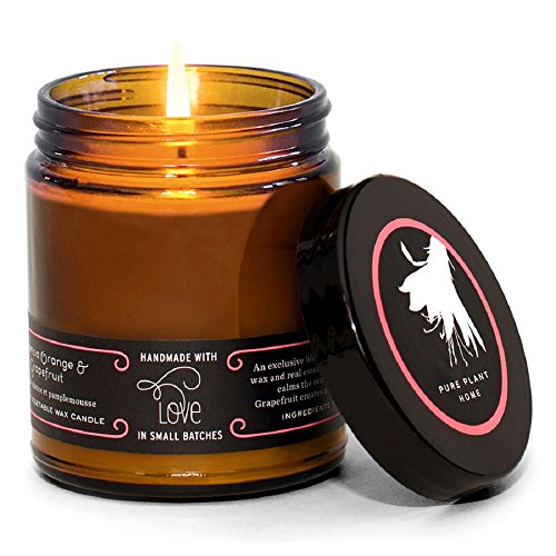 Pure Plant Home 886 Large Amber Apothecary Jar Valencia Orange/Grapefruit Coconut Wax Large Amber Jar Valencia Orange/Grapefruit