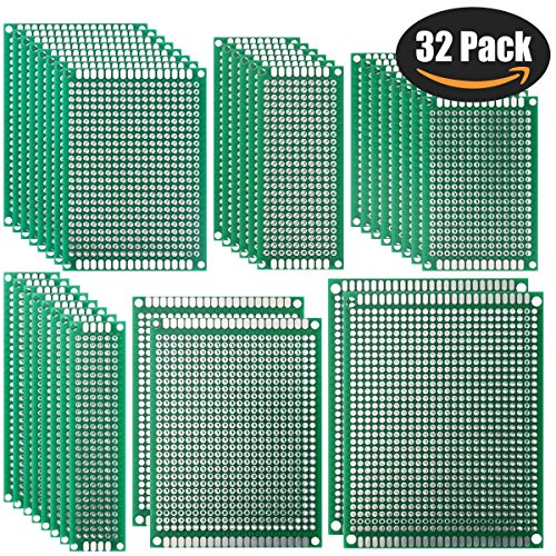 PCB Board, 32 Pcs PCB Prototype Board Double Sided for DIY - 6 Sizes by VERONES